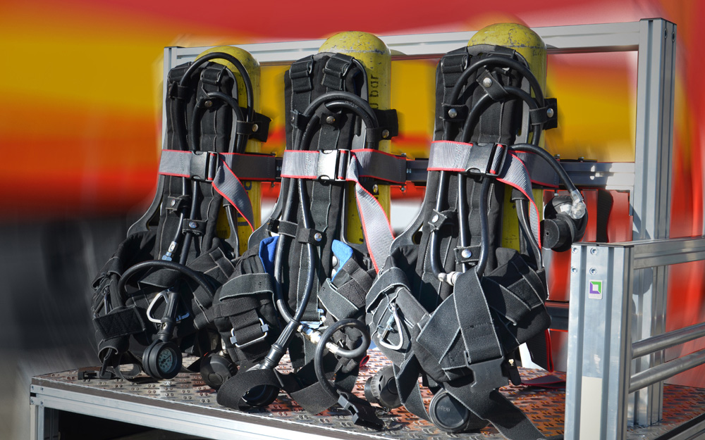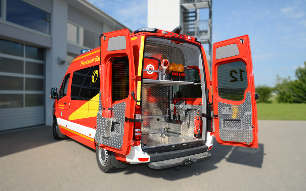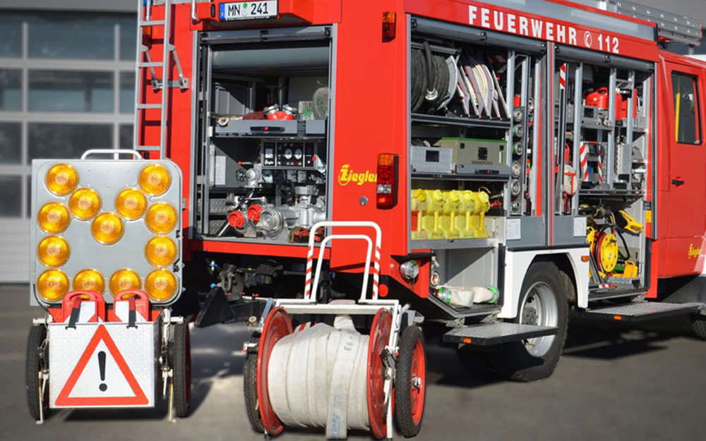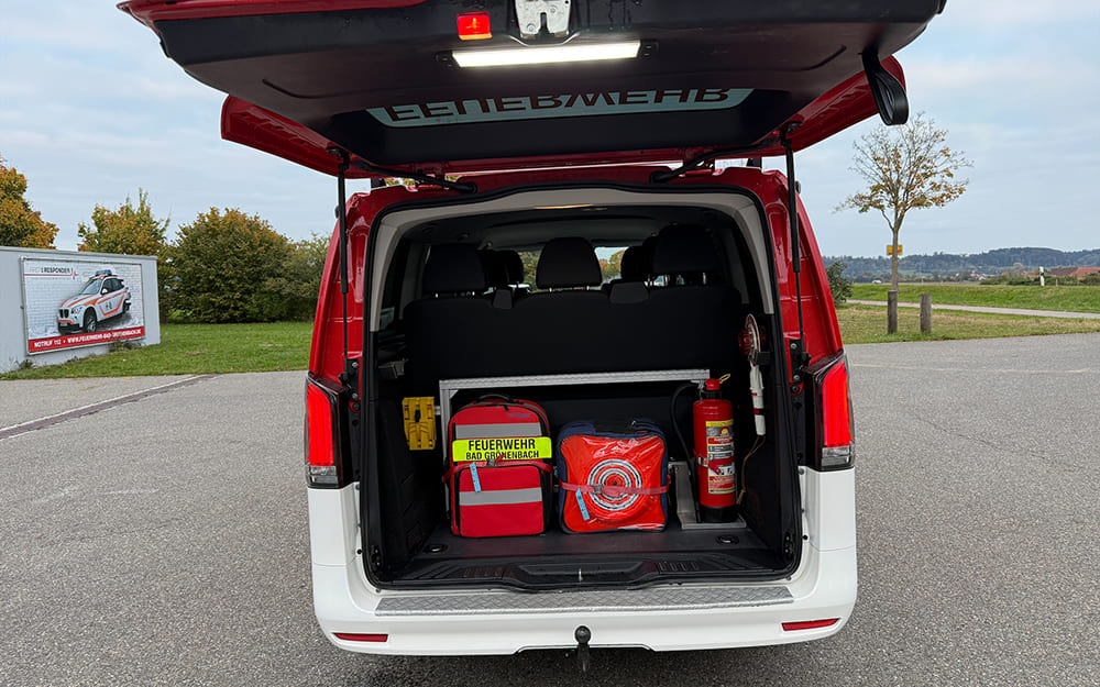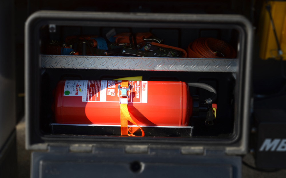 Beladung: Handfunkgeräte, Handlampen Feuerlöscher, Faltkegel, Winkerkelle, Erste Hilfe Rucksack