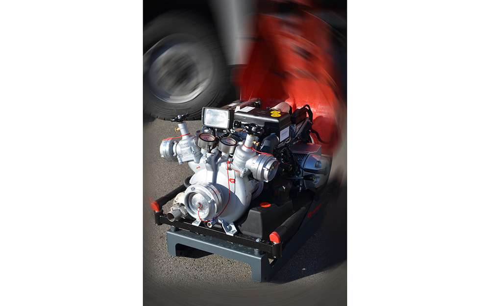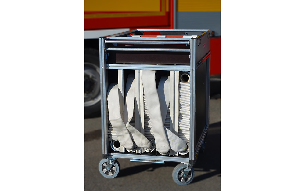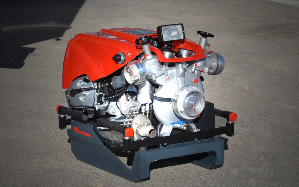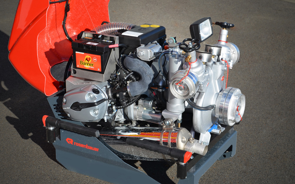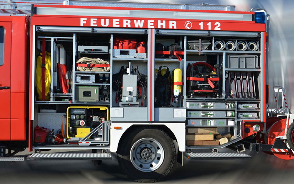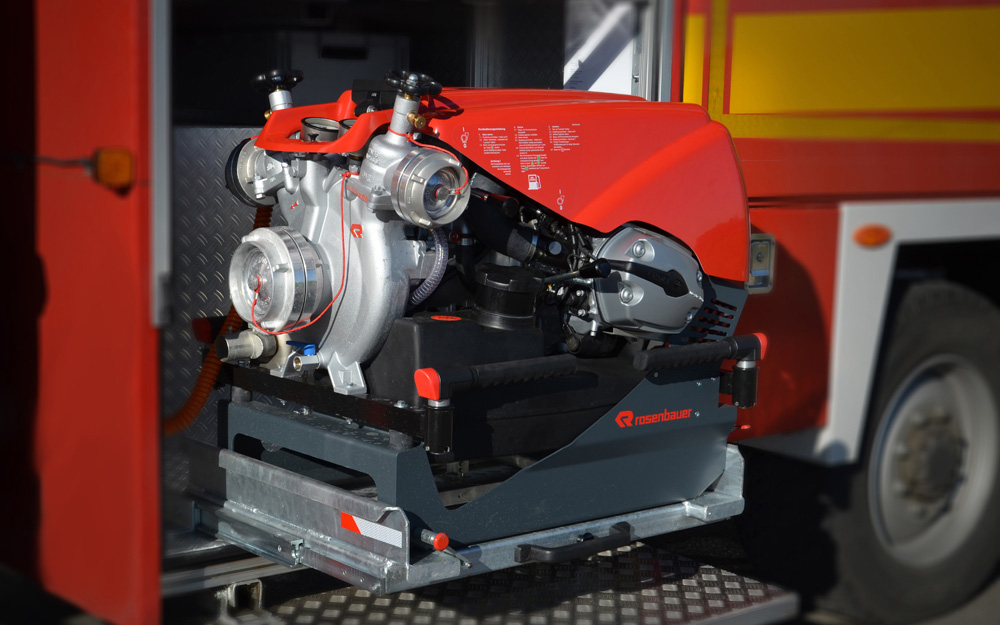 Ausrüstung für Löschwasserförderung, Brandbekämpfung und Technische Hilfeleistung; Rosenbauer FOX III PFPN 10 / 1000; 4 Schlauchcontainer zur Lagerung von mind. 500 mtr verlegebereit zusammengekuppelten (25)B-Schläuchen pro Rollcontainer; 1 Rollcontainer Hochwasser mit Tauchpumpe, Wassersauger, Kabeltrommel und 3-C-Schläuche; 1 Rollcontainer Ölbekämpfung 4 Sack Ölbindemittel, Streuwagen, Besen und Schaufel; 1 Rollcontainer Kasten zur Aufnahme von Flüssigkeiten ca. 300l; 1 Rollcontainer Atemschutz zur Lagerung für 6 PA-Geräte, 6 Atemschutzflaschen und 6 Masken; Verkehrsabsicherungseinrichtung (Leitkegel mit Blitzleuchten), Motorsäge mit Schutzausrüstung (Helm mit Gehörschutz und Schnittschutzkleidung); Tragbarer Stromerzeuger (Eisemann BSKA 9E) 9 kVA und 1 Kabeltrommeln; Multifunktionsleiter mit divers. Zubehör; Diverse Kleinteile und Ausrüstungsgegenstände (Armaturen, Strahlrohre, Werkzeug, Leinen, Schaufeln, Besen, Hitzeschutzkleidung, Rettungstuch, , Pulverlöscher, Ölbindemittel, Wathosen)