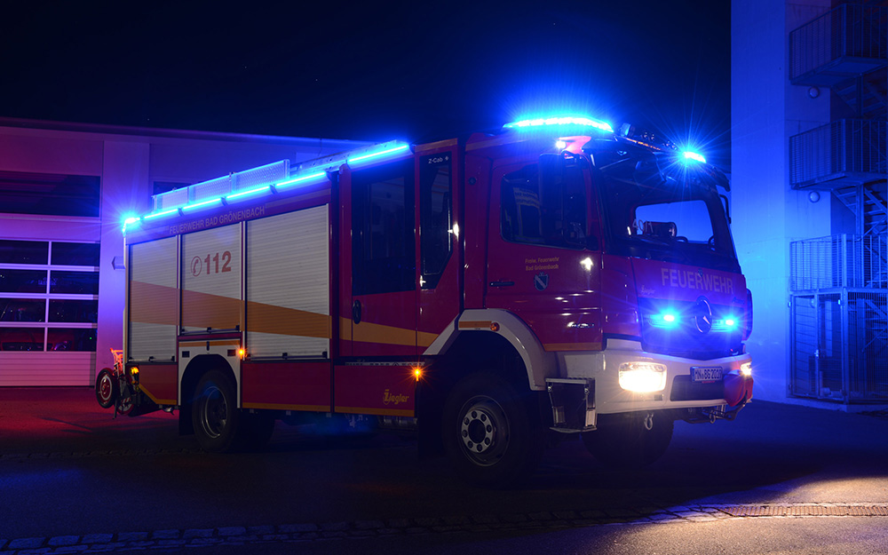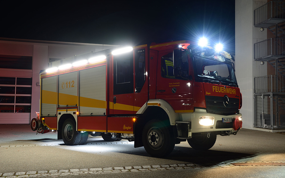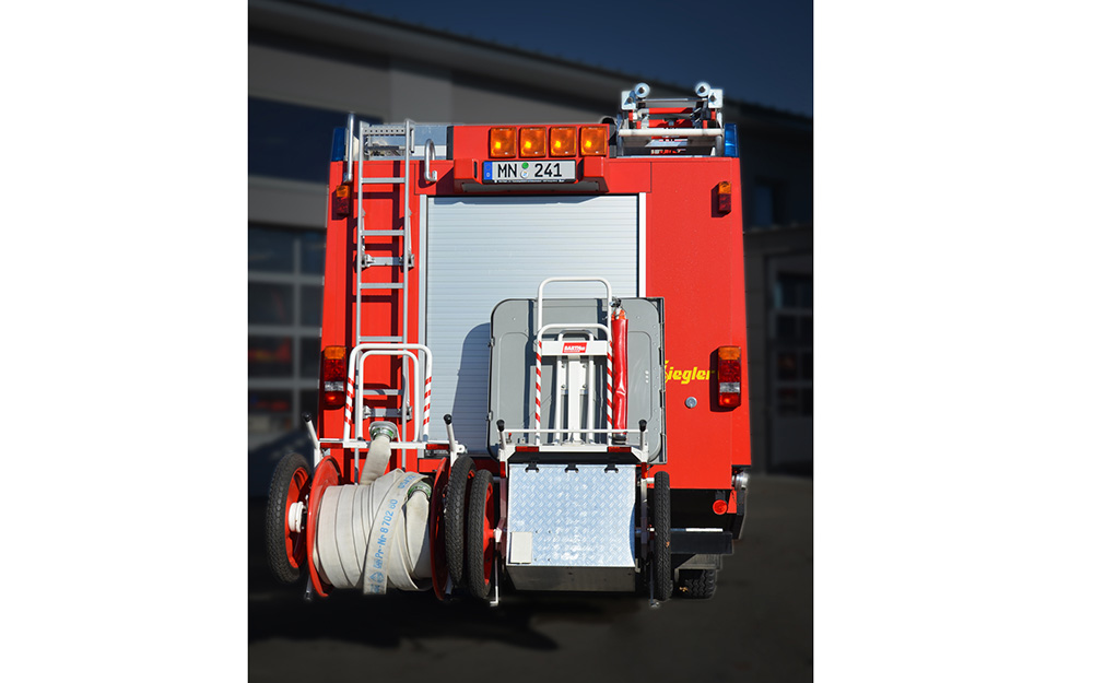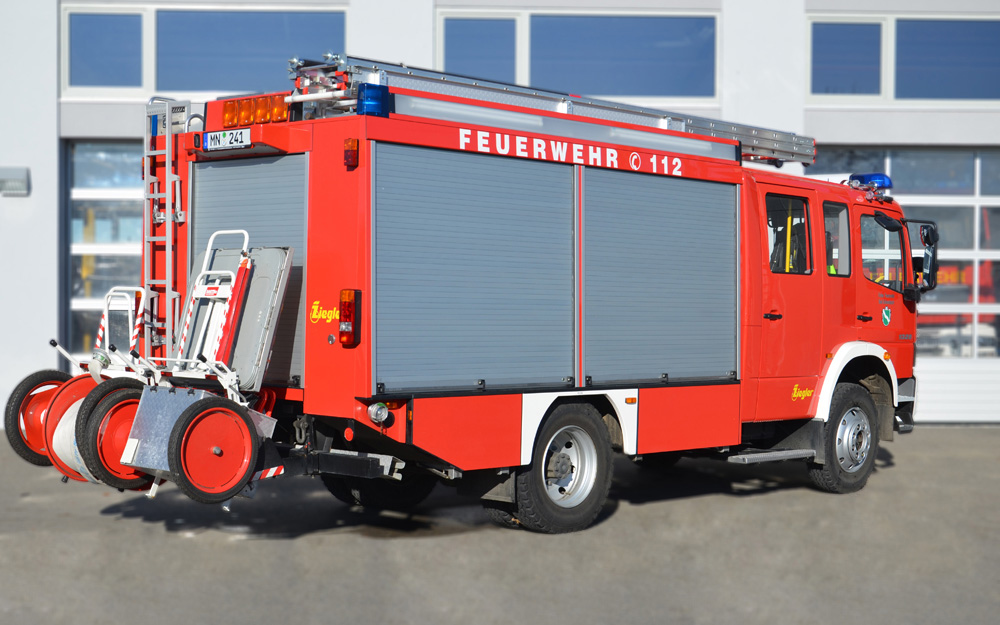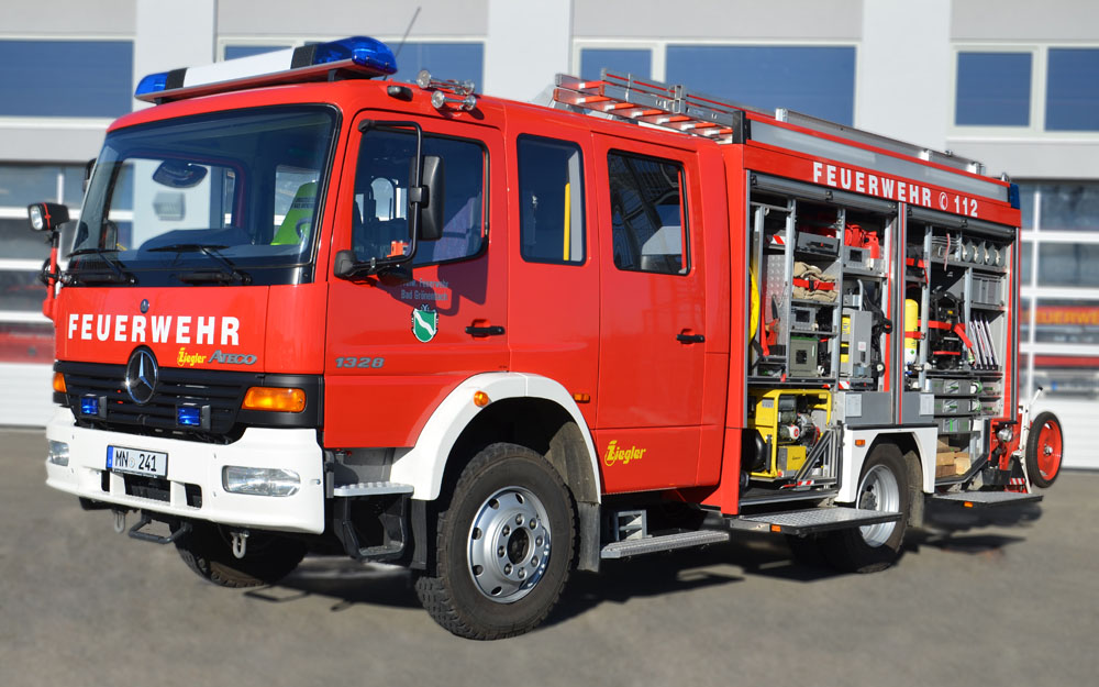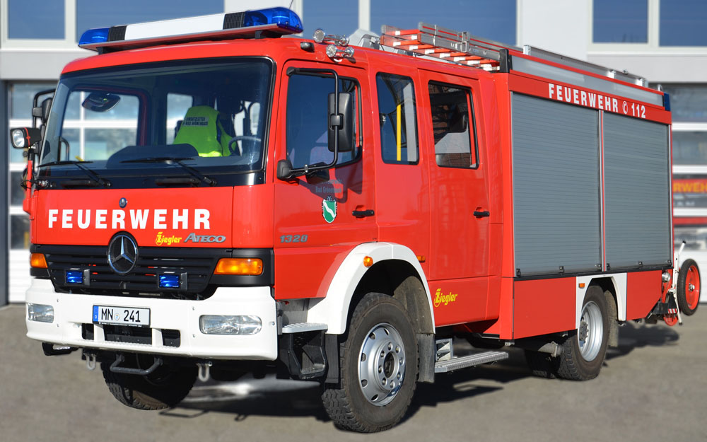 Beladung: 2000L Wasser; Schaummischanlage + 120L Schaummitteltank; Seilwinde 5t; Wasserwerfer auf dem Dach