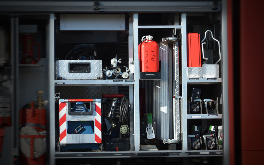 4m-Handfunkgerät; Laptop; Multifunktionsdrucker; GSM-Modem; Telefon; Einsatzsoftware “Fireboard”; Feuerwehr Alarmpläne; Kartenmaterial; Führungssystem FüSys mit Lagetafel; Notfallrucksack; Verkehrabsicherungsmaterial